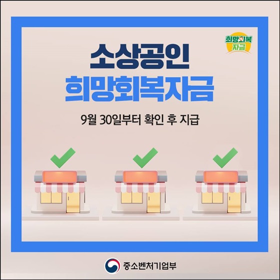 소상공인 희망회복자금 확인지급 신청방법을 안내합니다. 소상공인 희망회복자금 확인지급은 9.30.부터 10월 29일까지 시행됩니다.