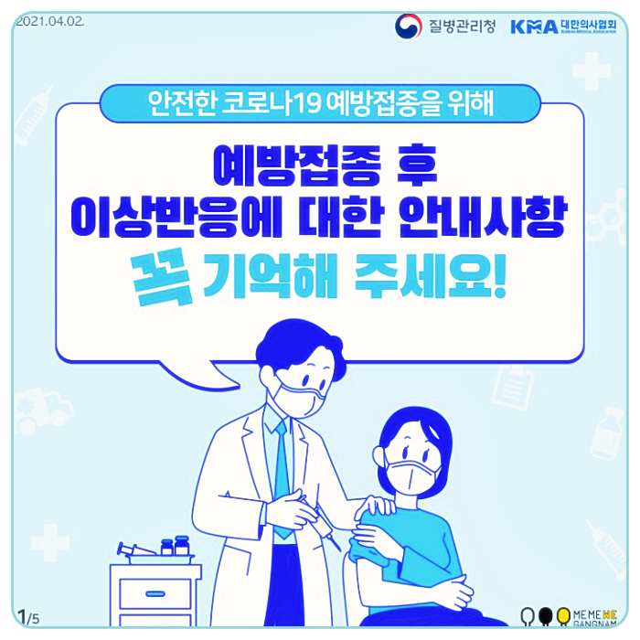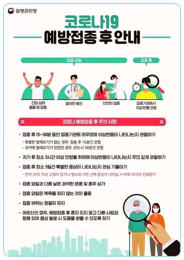 - 접종 후 최소 3일간 특별한 증상이 나타나는지 관심 기울이기
