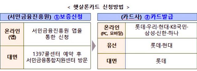 햇살론카드 카드사 별 혜택 연회비 신청방법을 정리해드립니다. 신규 보증부 정책서민금융상품인 햇살론카드가 오는 27일 출시된다. 햇살론카드 도입 취지 및 이용방법, 주의사항 등을 함께 정리했다.
