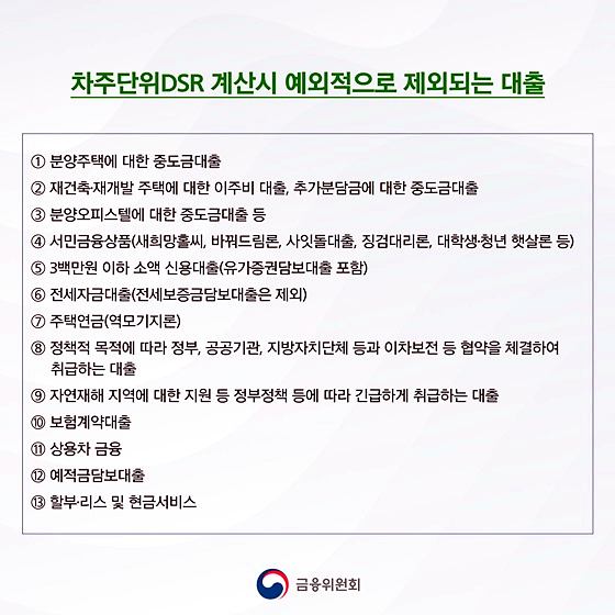 [차주단위DSR 계산 시 예외적으로 제외되는 대출]