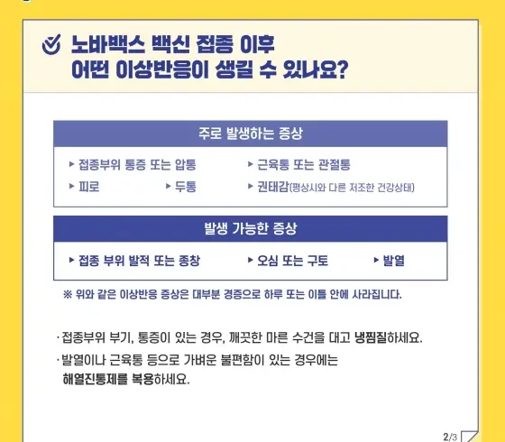 [노바백스 백신 접종 이후 발생 가능한 증상]