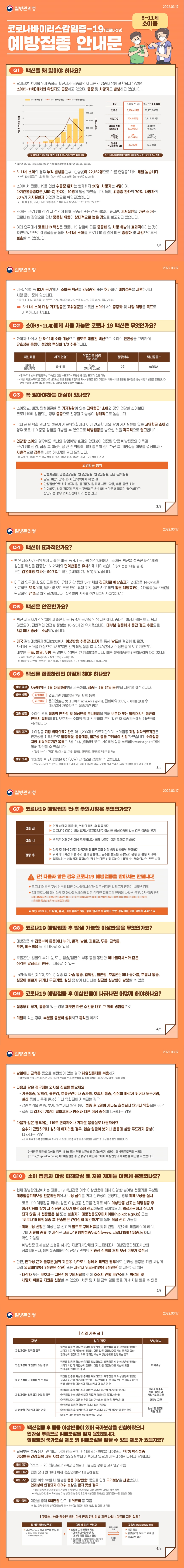 만 5→11세 소아의 코로나 오미크론 백신 예방접종을 시작합니다