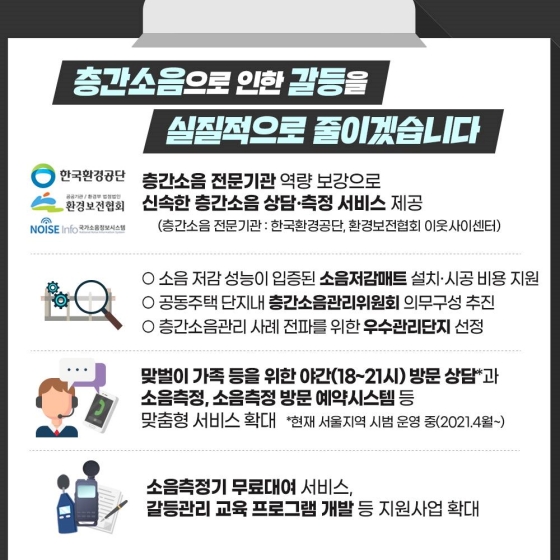 · 소음측정기 무료대여 서비스, 갈등관리 교육 프로그램 개발 등 지원 사업 확대