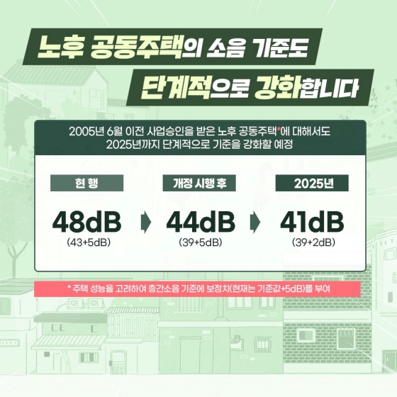 ◆ 노후 공동주택의 소음 기준도 단계적으로 강화합니다.