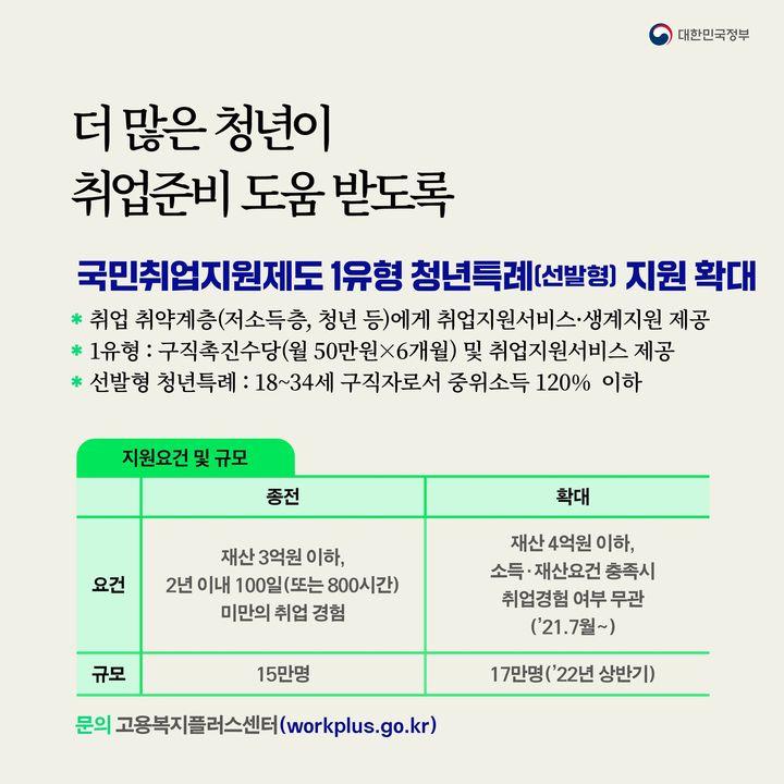 국민취업지원제도 1유형 청년특례(선발형) 지원 확대